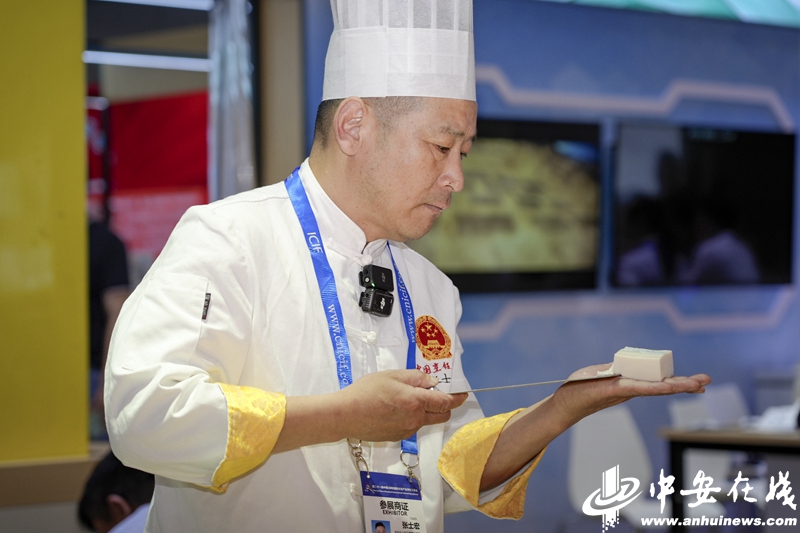 “我這次帶來(lái)的是淮南豆腐宴特色菜。”張士宏指著琳瑯滿目的豆腐菜品介紹道:“這道‘楚大鼎’是用豆腐還原楚國(guó)重器,那片‘古城墻’則復(fù)刻了壽縣古城風(fēng)貌。每一道菜品都在講述壽縣的歷史故事,讓歷史會(huì)說(shuō)話,讓文物會(huì)說(shuō)話,讓文化會(huì)說(shuō)話,讓豆腐會(huì)說(shuō)話。”