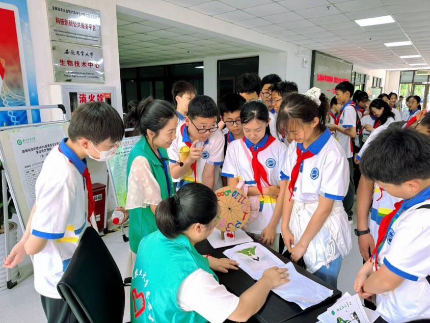 合肥市五十中學天鵝湖教育集團天鵝湖校區2023級(13)班、(15)班的同學們在老師的帶領下也來到安徽農業大學的科技周活動現場。安徽農業大學專家老師向同學們詳細介紹了茶的起源、干茶的分類及其加工方法、茶的健康、茶葉保鮮與貯藏、茶葉沖泡方法、茶葉深加工及其產品等科普知識,體驗炒茶、泡茶、倒茶、品茶,不僅感受到了茶葉的清香和甘甜,還深入了解了茶文化中蘊含的和諧、包容、謙虛、內斂等精神品質。