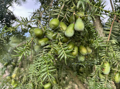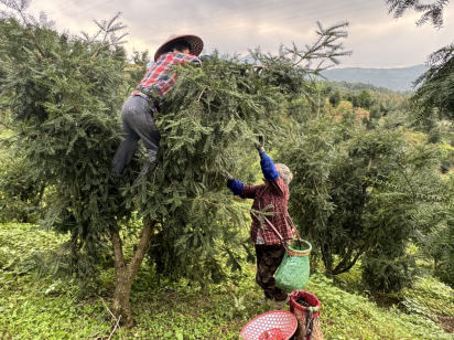 步入林間,一股清幽獨特的榧香撲面而來,帶著山林特有的清新。據悉,這片香榧基地總面積達87畝,自2016年起開始栽種香榧樹苗。七年來,基地工作人員秉持科學管理理念,悉心照料每一株樹苗,從土壤改良到水肥調控,從病蟲害防治到修剪養護,每一個環節都傾注了大量心血,終于在2023年迎來首次收獲。由于香榧獨特的“一年開花,兩年結果,三年成熟”生長周期,初始采摘僅收獲2000余斤青果,而今年,這片香榧林才真正迎來了全面豐收的時刻。