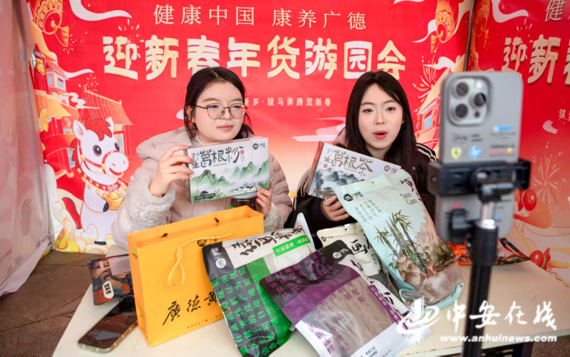 大學生群體的積極參與為活動注入青春動能,直播推廣成為農特產品出圈的重要抓手。活動期間同步舉辦安徽省鄉村振興電商直播賽(廣德)冠軍賽,從全省24所高校遴選的優秀團隊,圍繞徽派醬鴨、野生葛根粉、秋木耳、水陽三寶等廣德及宣城代表性農特產品展開直播競技。啟動儀式當天,部分大學生“鄉村振興助農推薦官”代表就在現場直播間內忙碌推介,通過創意表達與線上互動,實現青年實踐與產品推廣的有機融合。同時,大學生團隊還與知名美食文化學者楊博士團隊、廣德本地達人矩陣及“一品江淮”自有主播齊聚濱河公園,開展露天專場直播,全景呈現民俗場景與地道農產品風味,以青春力量激活鄉村消費活力。