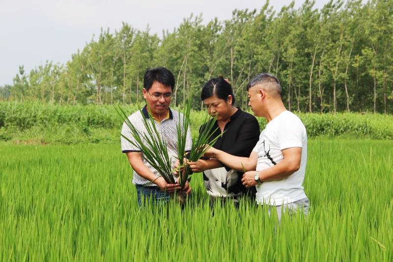 安徽農業大學專家在田間查看水稻長勢。(安徽農業大學供圖)
