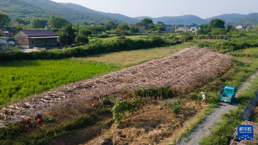 8月31日,在安徽省銅陵市義安區天門鎮,村民在處理自家采收的銅陵白姜(無人機照片)。新華社記者 張端 攝
