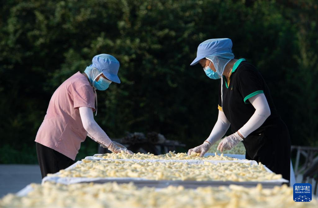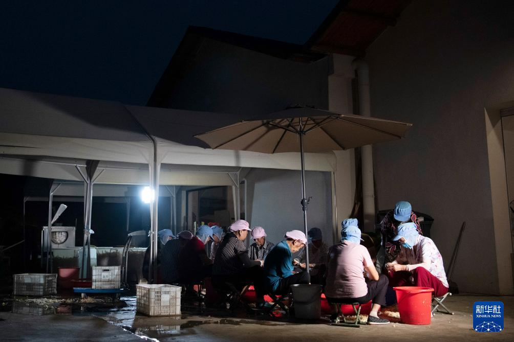 9月14日晚,在安徽省銅陵市郊區大通鎮大院村山禮白姜工坊門前,工作人員在加工銅陵白姜。新華社記者 張端 攝