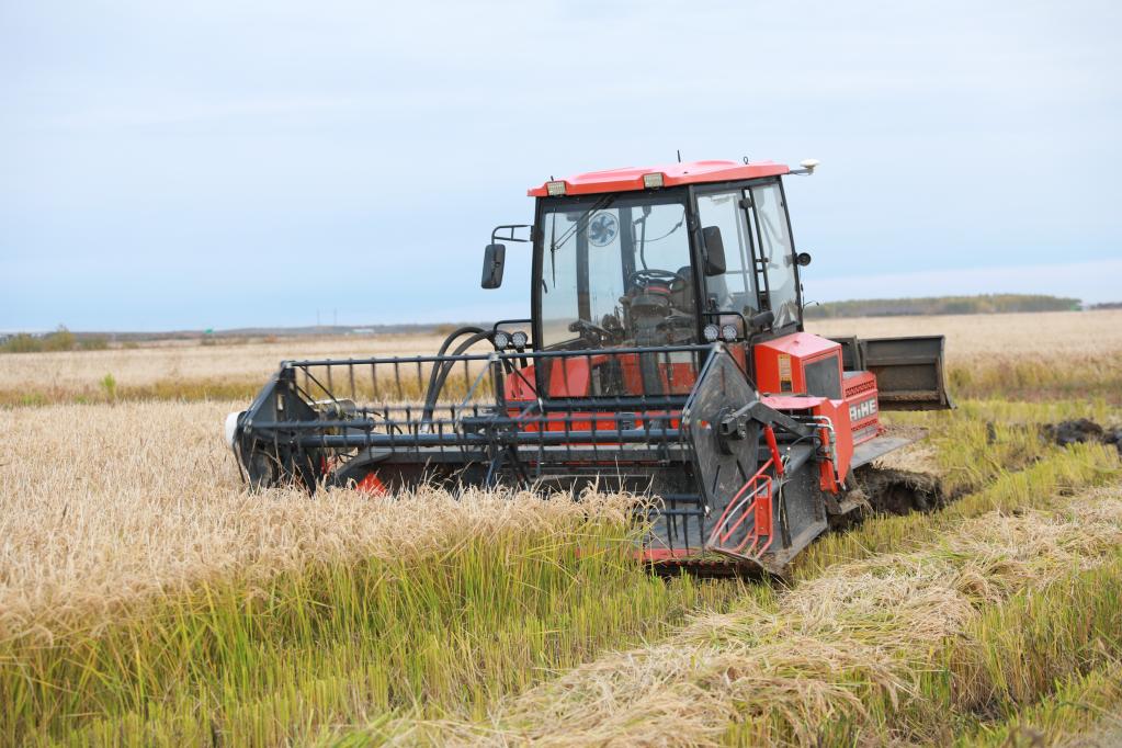 北大荒集團洪河農場有限公司的無人駕駛收割機正在作業(yè)。(受訪者供圖)