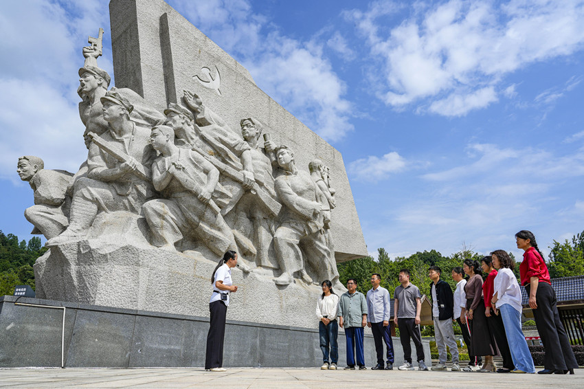 游客在位于金寨縣南溪鎮(zhèn)丁埠村的立夏節(jié)起義陳列館參觀。新華社發(fā)(范柏文 攝)