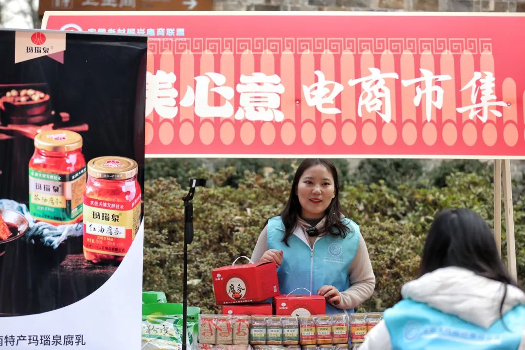 “皖美心意·電商市集”活動現場,安徽鄉村振興電商聯盟19家成員單位企業集體亮相,集結安徽16地市特色年貨產品。