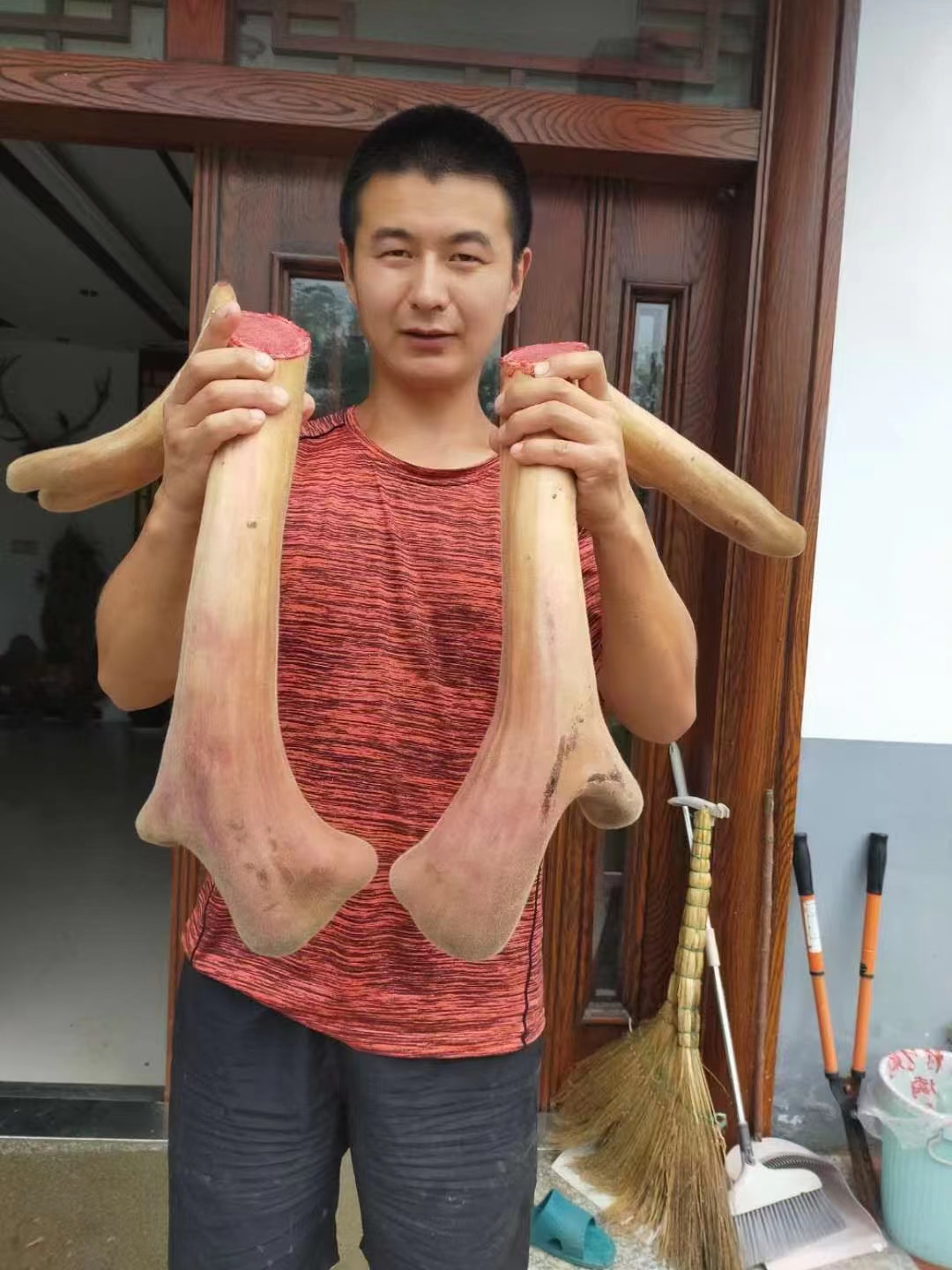 汪哲舉著新鮮鹿茸