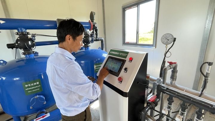 “得益于4臺土壤墑情監測器,我能實時了解到不同深度的土壤濕度,如果有地方缺水了,我就通過手機軟件輸入需要補充的水量,機器能精確地把需要的水量從池塘抽出,經砂石過濾器過濾后,噴灑到田里。”羅發新一邊演示一邊講解。操作起這些智能設備,他動作非常熟練。