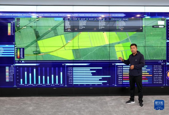 9月2日,在位于富錦市萬畝水稻科技示范園內(nèi)的富錦市現(xiàn)代農(nóng)業(yè)信息服務(wù)中心,工作人員在介紹水稻種植的整體情況。
